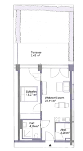 Die Einbauküche wird von den Mietern selbst mitgebracht, wodurch individuelle Gestaltungsfreiheit möglich ist.