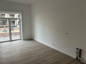 Der Wohn- und Essbereich überzeugt durch seine Offenheit und die großen Fensterflächen, die für viel Tageslicht sorgen. Von hier aus gelangen Sie auf die sonnige Terrasse mit Gartenanteil – ein idealer Ort zum Entspannen oder für gesellige Stunden im Freien.