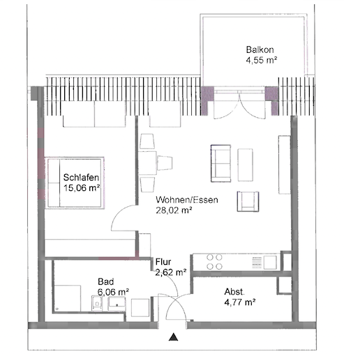 • Wohnfläche: ca. 61,08 m², 2 Zimmer