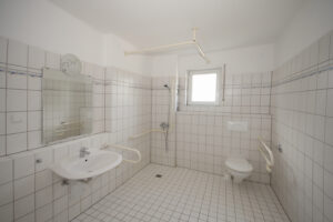 Das helle Badezimmer ist seniorengerecht gestaltet und verfügt über eine praktische Dusche sowie ein Fenster, das für Tageslicht und angenehme Belüftung sorgt. Auch die Küche ist freundlich und lichtdurchflutet, sodass Kochen in angenehmer Atmosphäre möglich ist. Eine Einbauküche ist nicht vorhanden, sodass Sie die Küche ganz nach Ihren eigenen Wünschen und Bedürfnissen einrichten können.