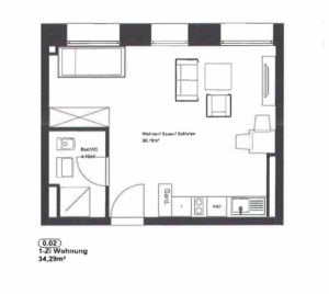 • 1 Zimmer (Wohn-/Schlafbereich)