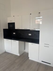 • Einbauküche (mit Herd, Backofen, Kühlschrank)