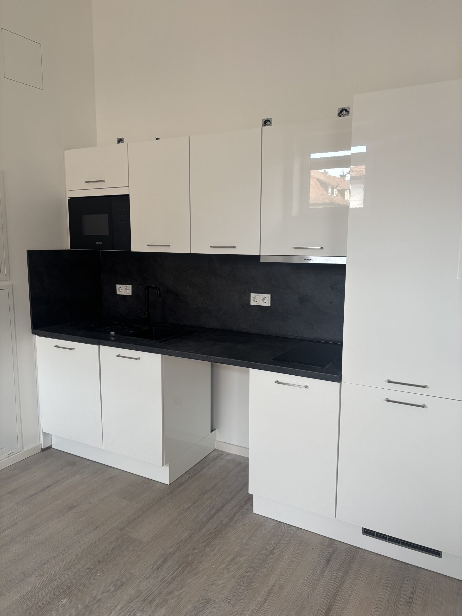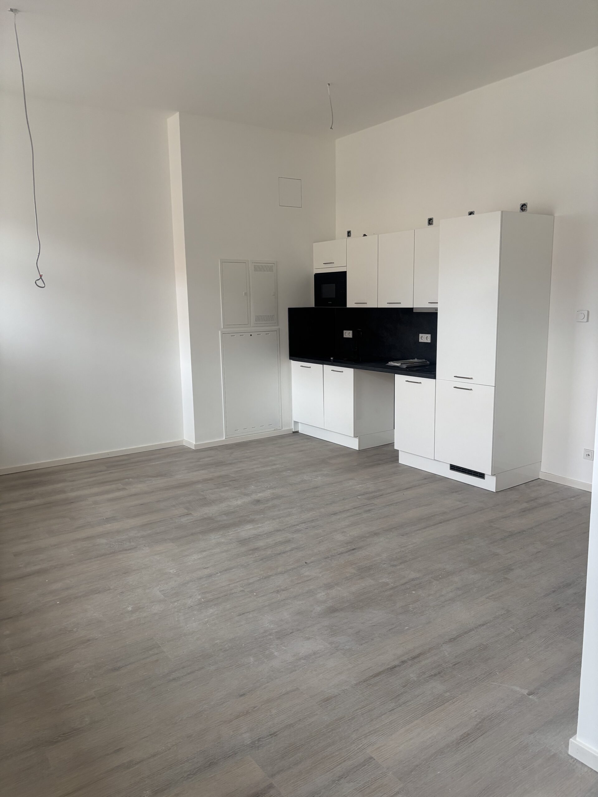 Die Einbauküche ist bereits im Mietpreis enthalten und mit allen wichtigen Geräten ausgestattet, darunter Herd, Backofen, Kühlschrank und Spüle. Das Badezimmer ist mit einer hochwertigen Sanitärausstattung versehen und bietet eine moderne Dusche, ein Waschbecken und ein WC. Die Wohnung verfügt zudem über Design-Vinylboden mit Echtholzdekor, was für eine edle Optik und angenehmen Komfort sorgt.