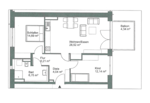 Ein besonderes Highlight der Wohnung ist die offene Gestaltung des Wohnbereichs, die Raum für eine harmonische Integration der Küche bietet. Diese offene Raumgestaltung fördert ein geselliges Ambiente und ermöglicht Ihnen, beim späteren Einbau einer Einbauküche beim Kochen mit Familie und Freunden im Kontakt zu bleiben. Die Einbauküche können Sie selbst nach Ihren Vorstellungen einbringen.