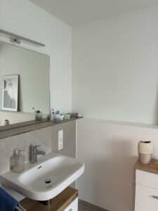 Zusätzlich profitiert die Wohnung von einer durchdachten Raumaufteilung, die sowohl Funktionalität als auch Komfort in den Vordergrund stellt. Das Bad ist modern gestaltet und verfügt über hochwertige Sanitärausstattung.