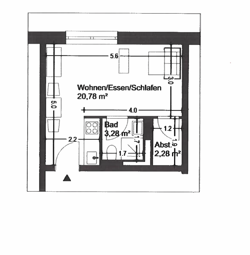 Auf 26,34 m² Wohnfläche präsentiert sich die Wohnung optimal geschnitten und bietet einen angenehm hellen Wohn- und Schlafbereich. Ein praktischer Abstellraum innerhalb der Wohnung sorgt für zusätzlichen Stauraum.